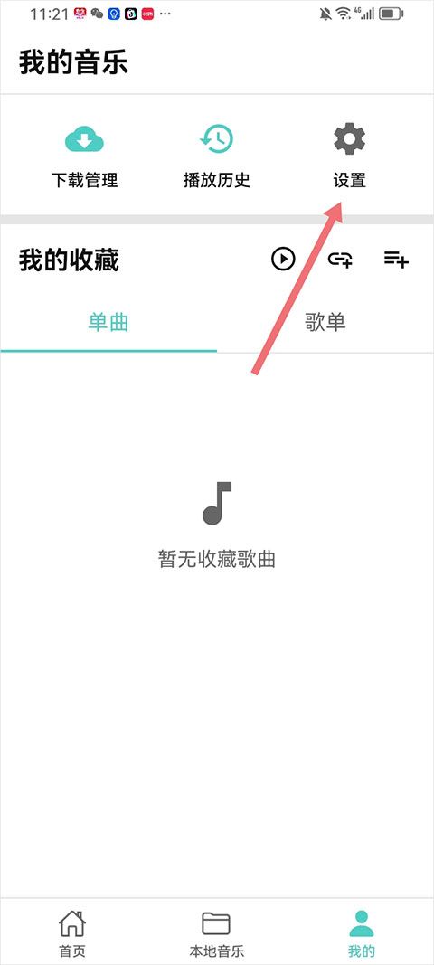 5、缓存完成后,进入底部我的,找到本地音乐下载管理,就能查看并离线播放已缓存的歌曲。