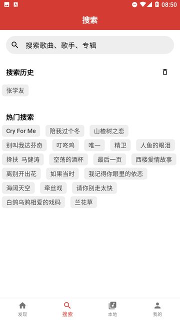 2、点击下方的搜索图标,之后输入歌曲名或者歌手名称;