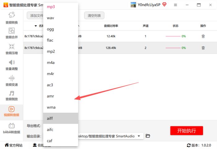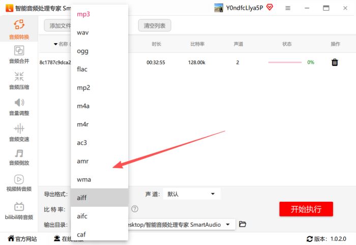 Step2、下方设置中,选择需要转换的音频格式,软件支持多种常见的音频格式