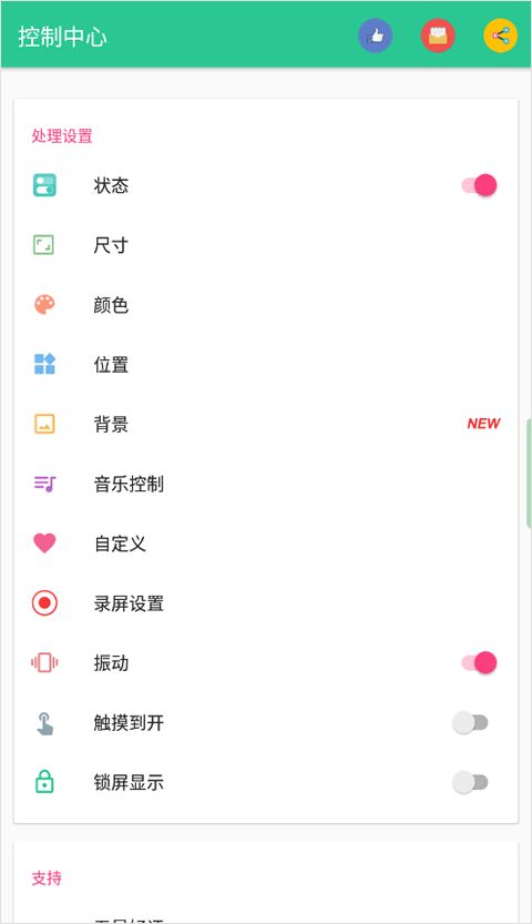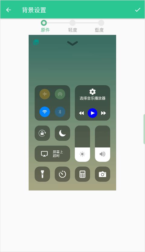同时你还可以自由设置控制中心的尺寸、颜色、位置等,还可以设置背景、播放音乐、调整屏幕亮度等,功能齐全,是你手机必备的一款辅助小工具。另外control center软件界面清爽简洁、没有任何的广告弹窗,并且体积小巧、操作简单,有兴趣的小伙伴赶紧来下载体验吧,保证你使用起来会爱不释手的!