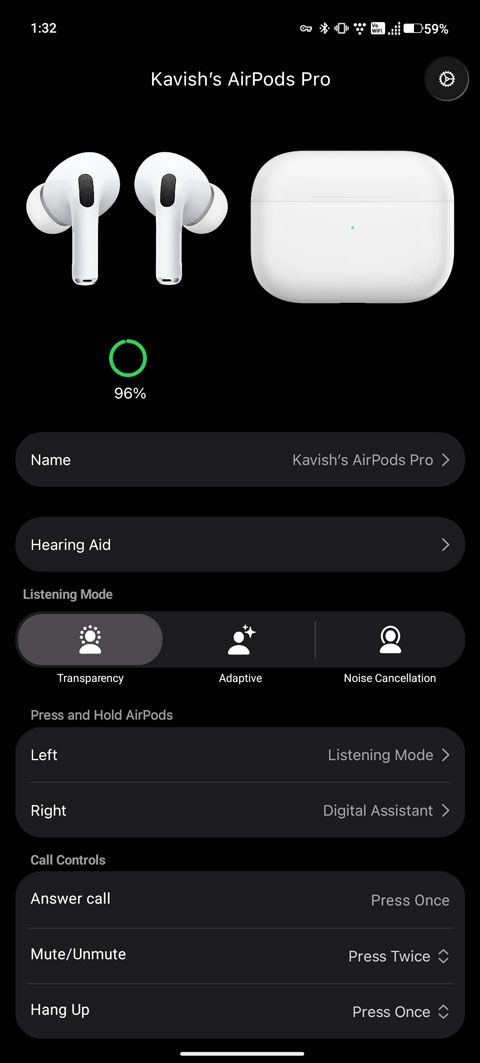 基础控制与状态显示:用户无需长按耳机柄,即可在设备上直接切换降噪、通透和关闭模式。工具实现了精准的入耳检测,摘下耳机自动暂停播放并切换音频至手机扬声器,戴上则自动续播。同时,它提供了精确到1%的左右耳机及充电盒电量显示,告别系统蓝牙的模糊电量提示。