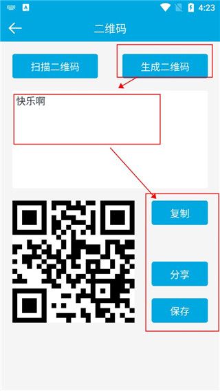 6、选择“生成二维码”-输入文字-我们可以复制、分享、保存;