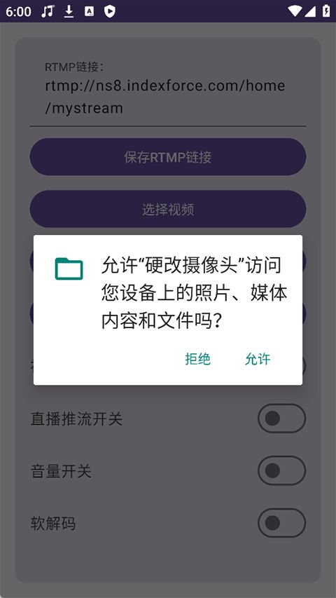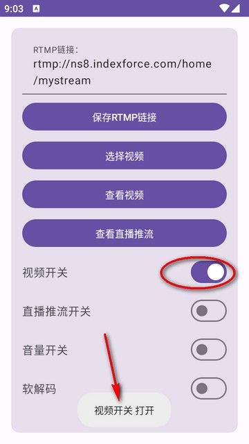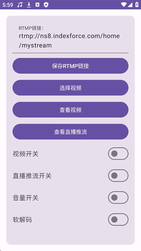 4、音量,直播推流,视频和软硬解码开关可控制。