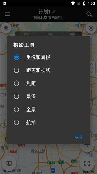 相机位置坐标,拍摄主体坐标,相机方位角和仰角,焦距,光圈,景深,超焦距距离,全景。这些相机设置都可以在应用内一一设置或者查询。