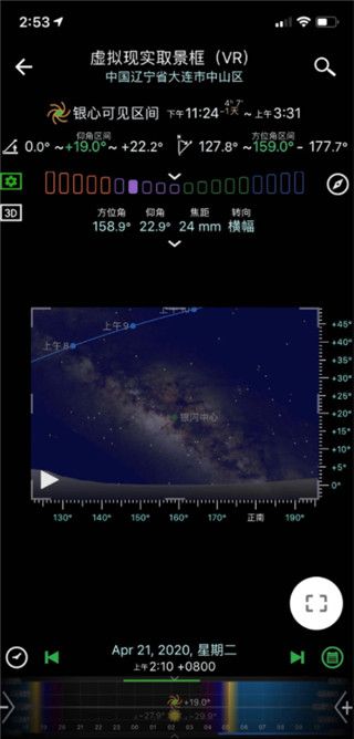 摄影师对相机取景框是非常熟悉的。现在您可以在Planit!里面看到模拟的取景框。这个取景框可以是虚拟现实,增强现实,图片或者街景,然后上面会有星历的覆盖层。