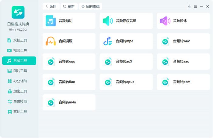 支持各种音频格式转换,包括:mp3、wav、ogg、ac3、acc、flac、opus、pcm、m4a等格式相互转换,还有音频剪切、音频调速、音量大小调整……、