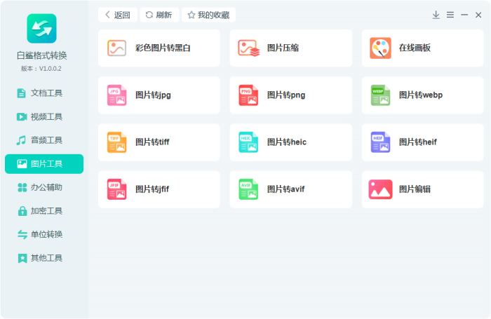 支持各种图片格式转换,包括jpg转换、png转换、webp转换、tiff转换、heic转换、heif转换、jfif转换、avif转换等等,常用功能有:图片转jpg、图片转png、图片转webp……