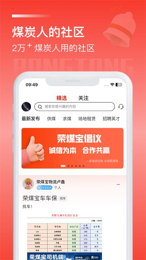荣煤宝app是专为煤炭人打造的综合性商业服务平台。不仅可以让用户了解到煤炭行业的最新资讯,还提供了煤炭在线交易服务,用户可随时查看精煤、煨煤、陕煤等不同煤种的实时报价。此外,荣煤宝与伊泰集团、汇能集团、满世投资、伊东集团等热门企业深度合作,同时支持专业找车服务,快速调配运力,保障交易安全。有需要的用户可以在本站下载使用~