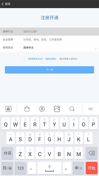 或在注册开通时填写行业信息进行申请咨询