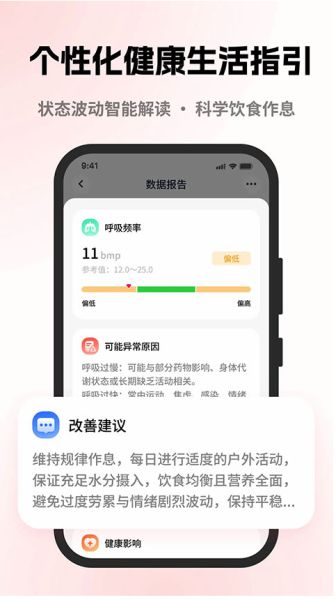 针对呼吸频率偏低等问题,智能分析原因并给出饮食作息建议