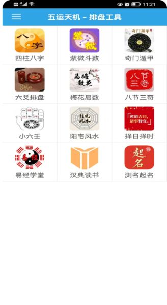 五运天机是一款简洁、精准、实用的易学五术排盘工具集成,内容包括子平八字、紫微斗数、奇门遁甲、六爻、梅花易数、风水地理、六壬和择日择时等。我们的宗旨是“人人都知命,快乐每一天“,“知命解惑,以果决行,改变命运“,传承中华绝学,传播中华文化,为人类的精神家园添砖加瓦,守护好每个人的内心世界。
