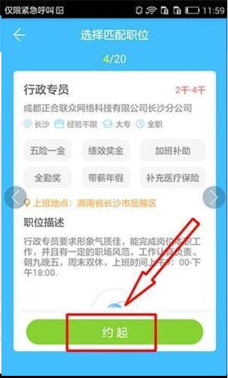 3、小伙伴可以左右滑动选择自己心水的职位,选好之后就直接“约起”