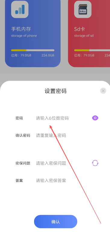 2.之后在弹出的设置密码页面中直接输入密码、密保问题和答案等内容即可成功设置密码。
