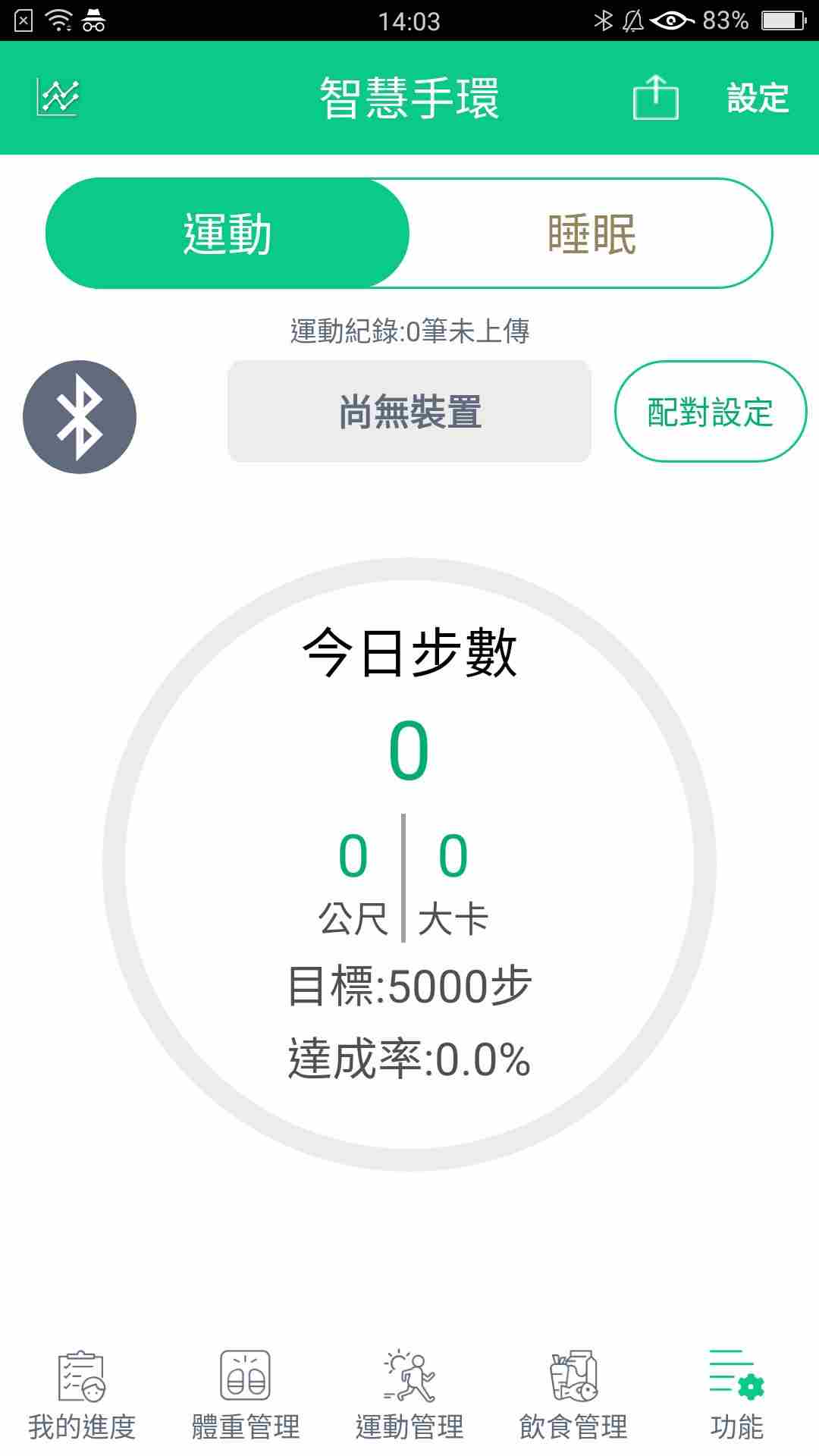 1、打开软件,可在 “智慧手环” 页面查看今日步数、运动目标达成率。