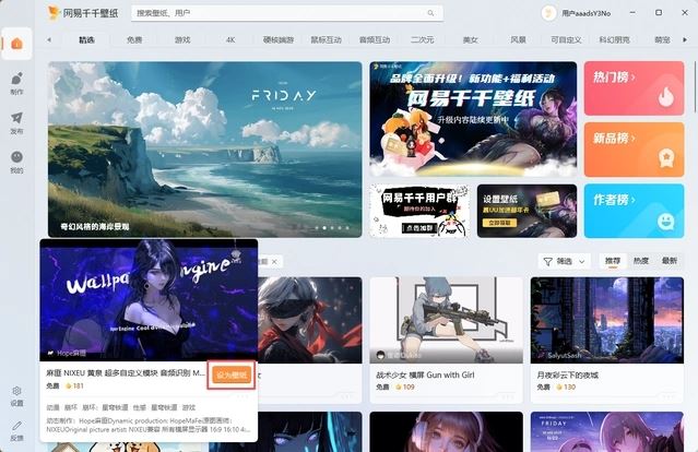 网易干干壁纸平台提供了免费、付费两种不同类型的壁纸,具体壁纸是否收费由创作者自主决定。
