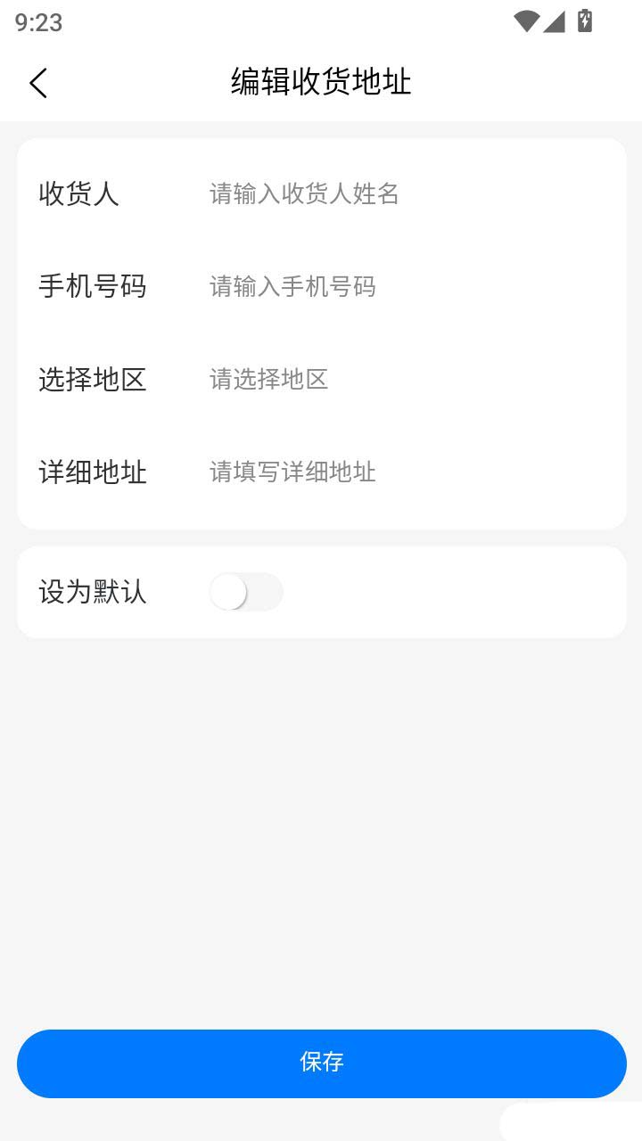 5.最后在“编辑收货地址”界面,填写收货人姓名、手机号码、详情地址后,点击“保存”按钮就完成了