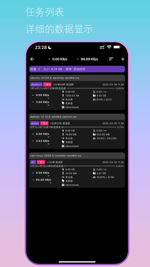 能够对任务的下载进度来实时查看,清晰掌握磁盘的占用情况,查看下载任务列表的数据。