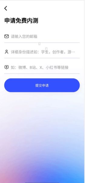 • 按页面要求填写邮箱、详细身份描述以及微博/小红书/B站等链接,填好以后点击提交
