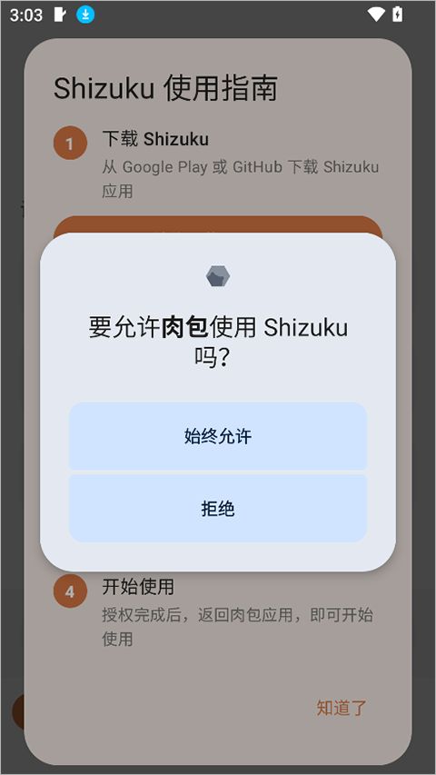在Shizuku中授权肉包