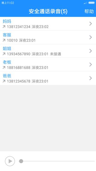 通话录音app是一款专业的安卓手机录音软件,功能很强大,可以实现手机的双向通话录音,用户可以边打电话边录音,非常的不错。同时,软件体积小巧,界面干净简洁,使用操作起来也十分简单,用户只需在后台启动软件,在通话时即可自动录音,完全不用担心不会使用的问题。另外,通话录音app还支持多种录音格式,如3gp,amr和wav等,是目前市场中非常不错的一款电话录音软件。有需要的朋友不妨下载试试看,相信一定不会让你失望的。