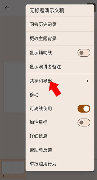 1、用户进入编辑完成之后,点击右上角的竖排点状图标,这个时候在打开的菜单中点击共享和导出选项。