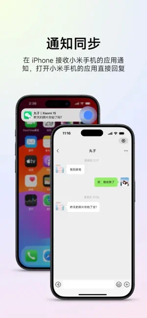 小米设备与 iPhone、Mac、iPad 设备互联,传输文件或跨屏协同。