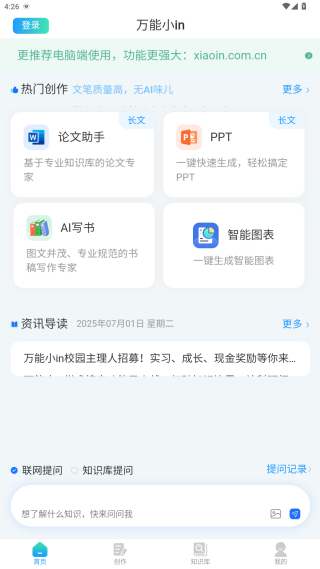 2、随后万能小in App会作为你的辅导老师辅导你完成稿子的写作