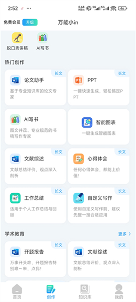 3、或者点击创作板块这里内置各种模版【AI创作、PPT、智能图表、工作总结等等】可直接生成完整的稿子,点击即可使用【需要升级会员才能使用】