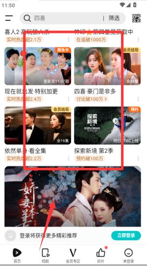 1、下载安装腾讯视频最新版后,打开app就能在首页看到正在热播的剧集和综艺。