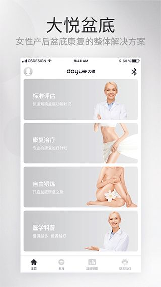 大悦盆底app是一款配合盆底康复治疗仪使用的专业级家用型盆底康复治疗软件,其中提供了标准评估、产后盆底功能康复、治疗压力性尿失禁及女性功能补偿等功能。同时用户在使用软件时,需要做一个健康评估,通过评估数据生成一个康复计划,用户只要跟着专业的视频教学一起学习训练,就可以让自己达到快速康复身体的效果,平台有专业的24小时在线客服,有任何问题都可以线上咨询,让用户可以享受到优质全面的康复服务。