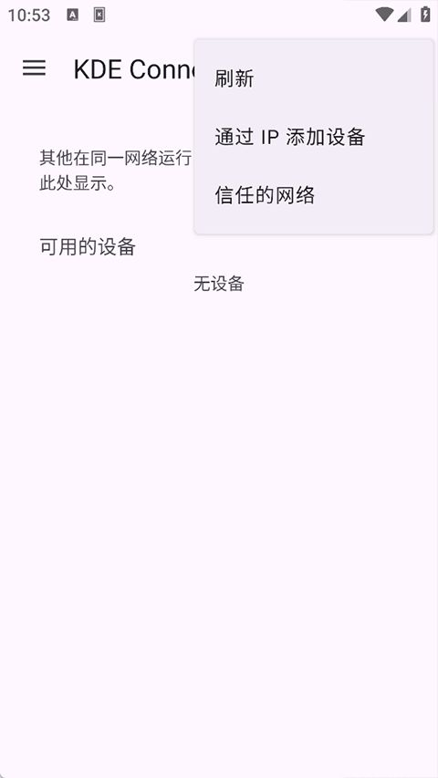 打开你手机里的KDEConnect。你应该可以见到你的Linux系统的名称。如果没有看到任何内容,确保你的设备和Linux都连接到了同一个网络后点击“刷新Refresh”。