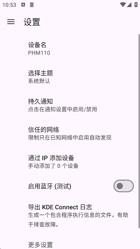打开Linux中的KDEConnect,见到你的手机进入下图所展示的样子。