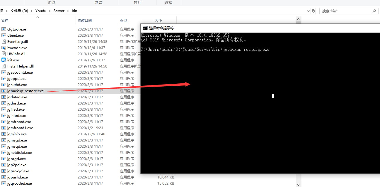 将jgbackup-restore.exe拖进命令提示符窗口。