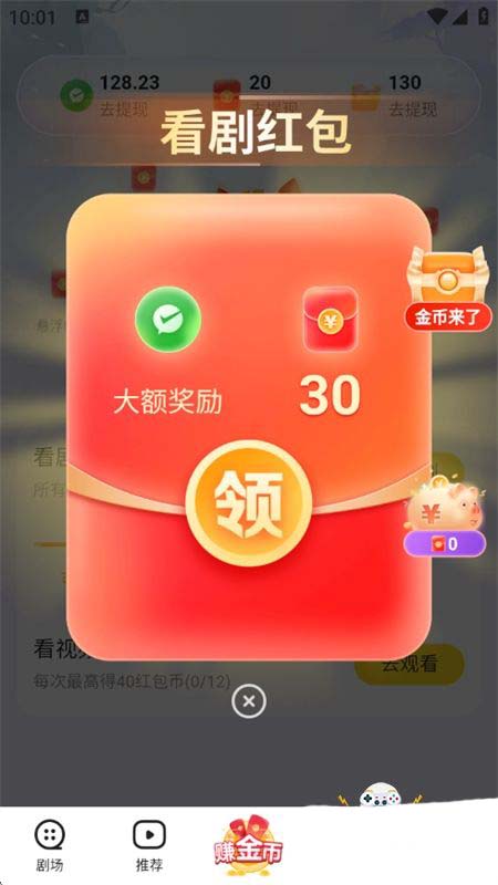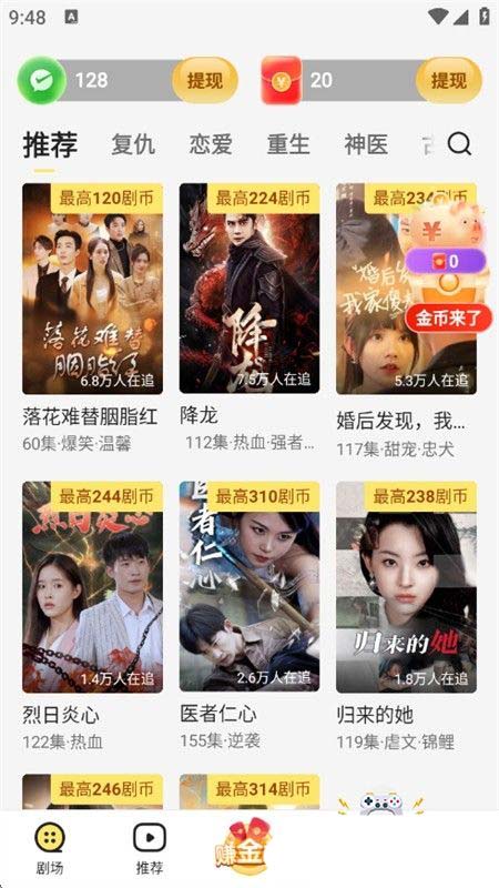 用户通过观看短剧、签到、分享等任务可赚取金币,金币可兑换现金,实现娱乐与收益的双重享受。