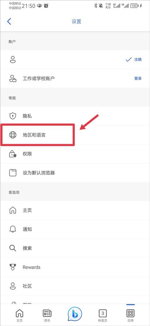 11、进入设置页面,选择地区和语言