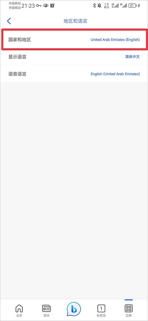 1、打开app后,首先点击首页下方的bing图标