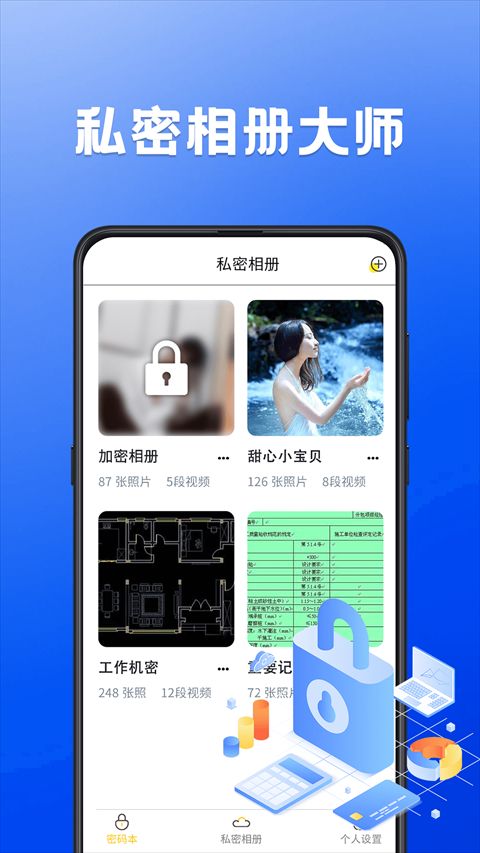 密码记录本app是一款能帮助我们记录不同类型的账号密码的手机应用,支持QQ、微信、抖音、邮箱等类型的密码保护。当我们想要记录qq账号密码的时候在选择账号类型就会看到qq的图标,这种方式可以让我们更直观查看,支持多种app图标供你选择。同时,密码记录本app支持添加专属私密相册,可以保护你的照片和视频。此外,密码记录本还支持隐身模式,可自定义的将文件伪装成桌面app图标,就算点击到了伪装图标别人没有密码是访问不了加密的文件的,用户即可放心,有需要的用户可自行下载体验。