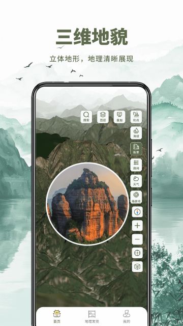 1、打开应用进入主界面,可通过立体地形模型直观查看山川地貌,感受地理景观的立体呈现。