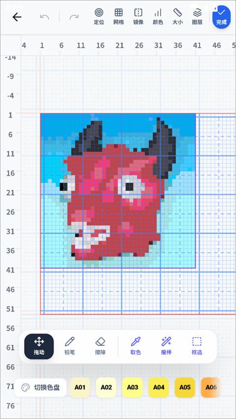 2、导入图片后,自动将普通照片转换成拼豆图纸,这里显示拼豆大小