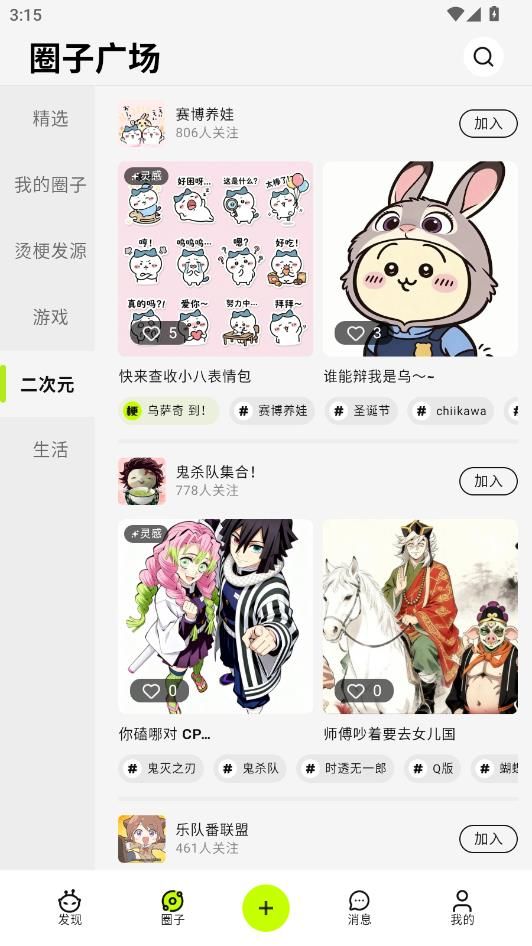 2、还有圈子广场,这里有热梗话题,不管是游戏、二次元还是生活题材的梗全都有;