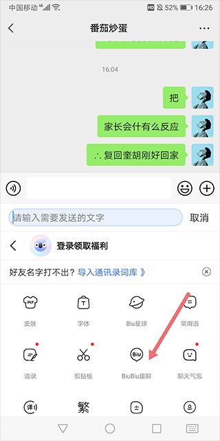 1、用户只需要在手机上安装好应用后,就可以在微信或qq聊天中,点击聊天输入框就会弹出讯飞输入法图标(下图红色箭头所指)