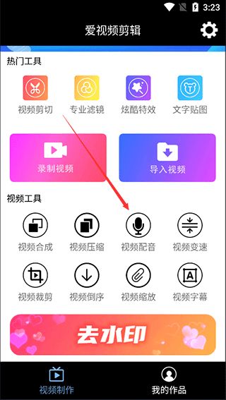 2、在【视频制作】页面下拉,找到【视频配音】功能;