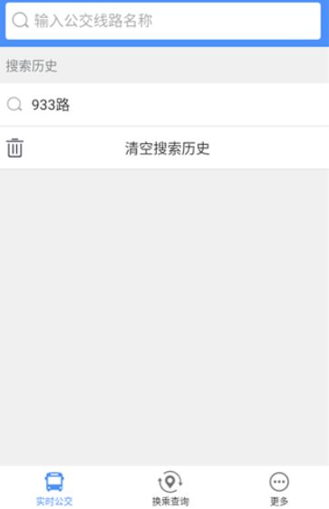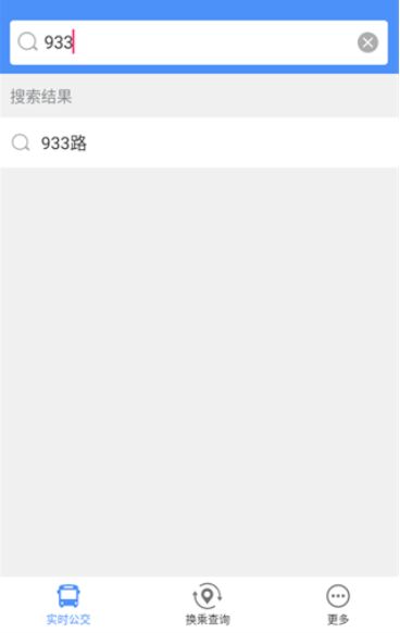 2、可以看到有实时公交与换乘查询两个板块,如果我们想要查询公交就在实时公交板块,点击搜索,选择自己想查看的公交车,输入路线即可,比如我们输入933路;