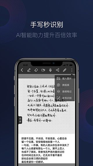 5、识别出手写字体,提供印刷体笔记字体,自动识别文字;