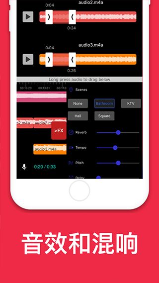 2、音频增强效果:轻松实现音频的变速、升调、降调、增益、噪声、变音、均衡器等效果,内置多种场景音效!