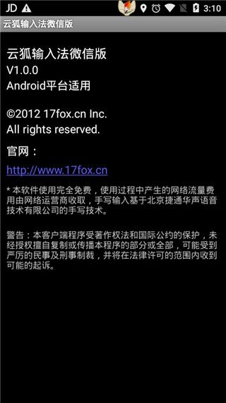 ☉ 本站提供的云狐输入法(输入法软件) v1.0.0 安卓版资源来源互联网,版权归该下载资源的合法拥有者所有。
