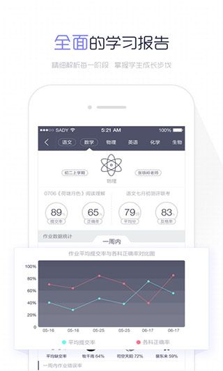 【学习报告】作业正确率,考试得分率,走势曲线让老师更准确掌舵教学方向;作业排行,考试排行,综合数据让老师更全面了解学生水平;