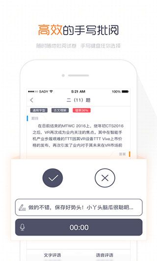 【批阅】手势打分,精准识别,还是传统的判卷方式,还是原来那样自然;每次考试都是对全班学生包括知识点,能力结构等情况的全面分析;