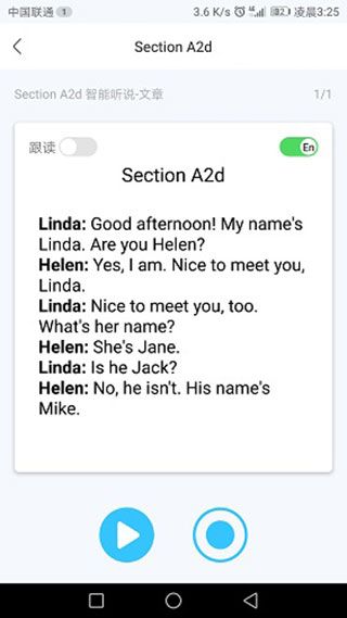 【智能听说】对英语课文单词和句子进行点跟读、听说训练,科学评测发音,是背课文、练口语的好伴侣。