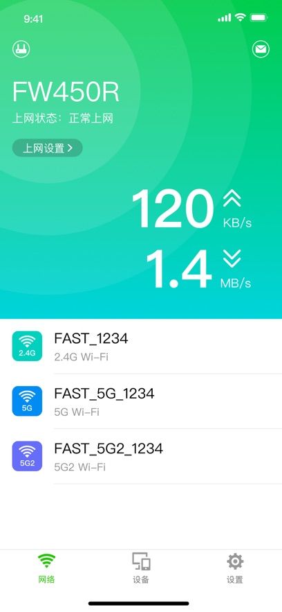 不支持多频合一功能的双频无线路由器默认有两个无线信号:FAST_XXXX和FAST _5G_XXXX(XXXX为路由器底部标贴MAC地址后四位),连接其中任意一个信号即可。